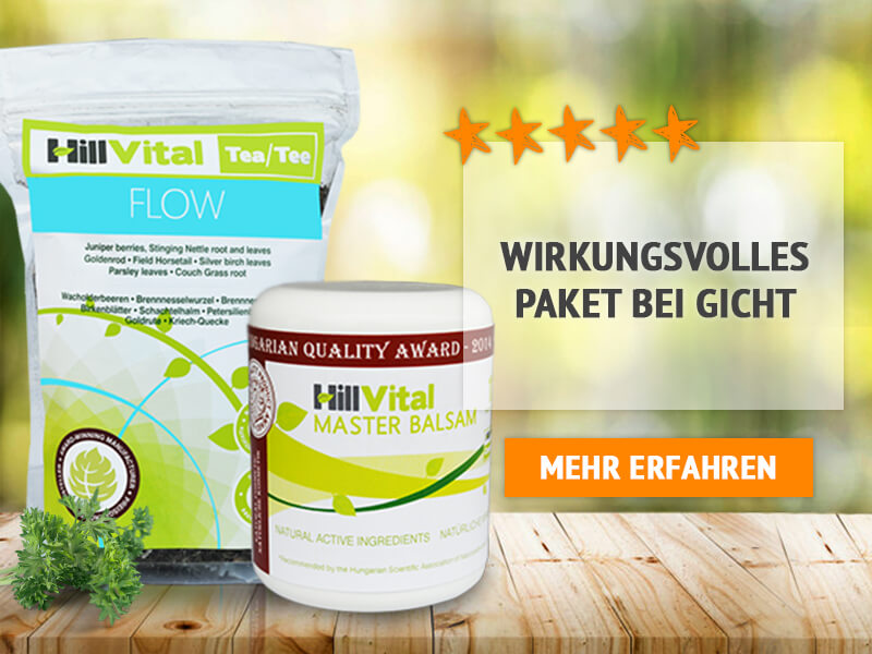 Die Kombination dieser und weiterer Kräuter enthält unser HillVital Tee Flow zur Entwässerung. Wenn Sie den Körper wirklich effektiv entwässern möchten, können Sie diese Teekur auch in Ihren Ernährungsplan mit einbeziehen.